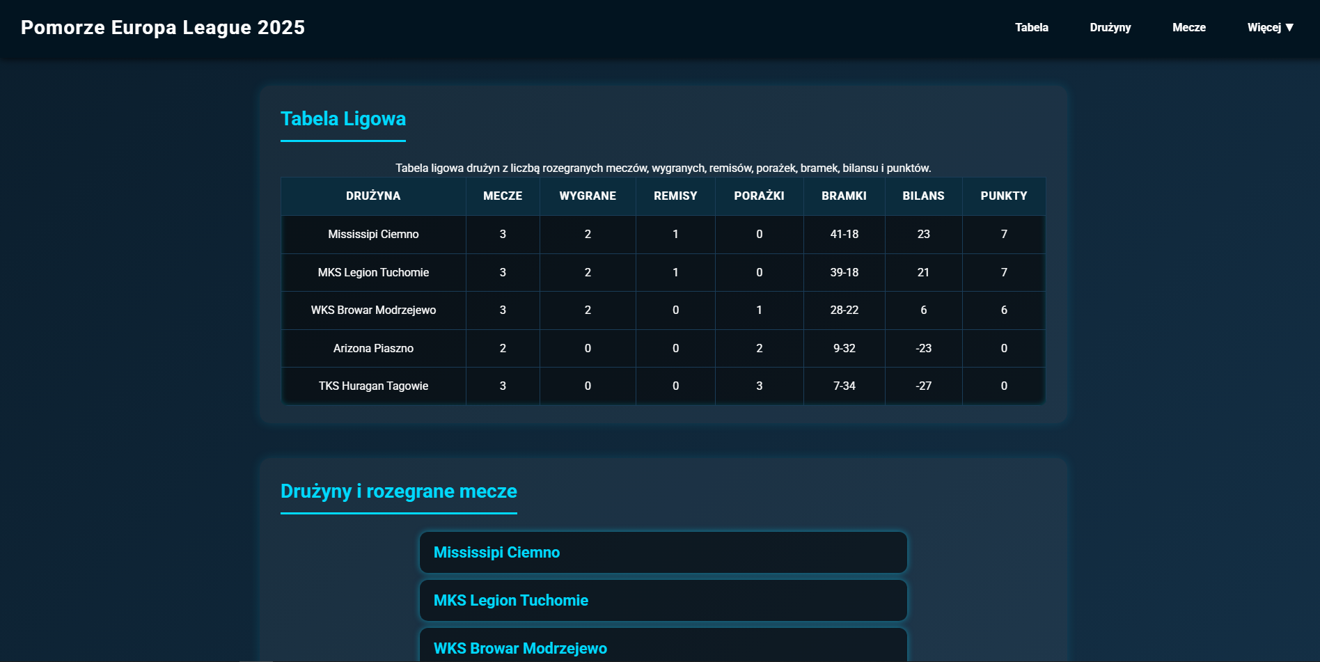 Aplikacja do zarządzania ligą piłkarską w regionie tuchomskim.